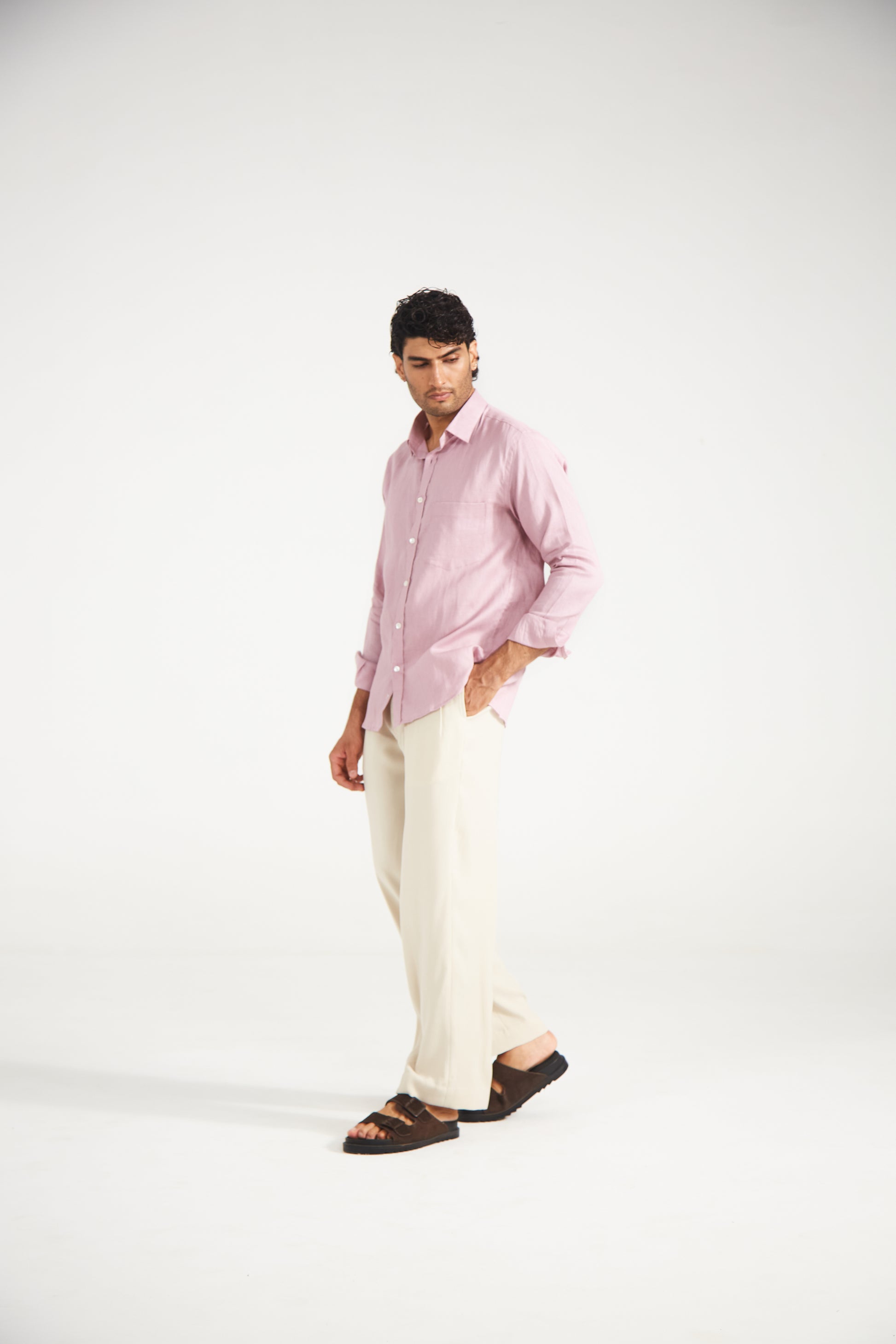Crafted from 100% pure linen, this shirt combines comfort, breathability, and timeless appeal. Its relaxed tailored fit and clean silhouette make it perfect for any occasion — from casual brunches to evening gatherings. The soft light pink hue adds a subtle charm and effortless elegance to your wardrobe.