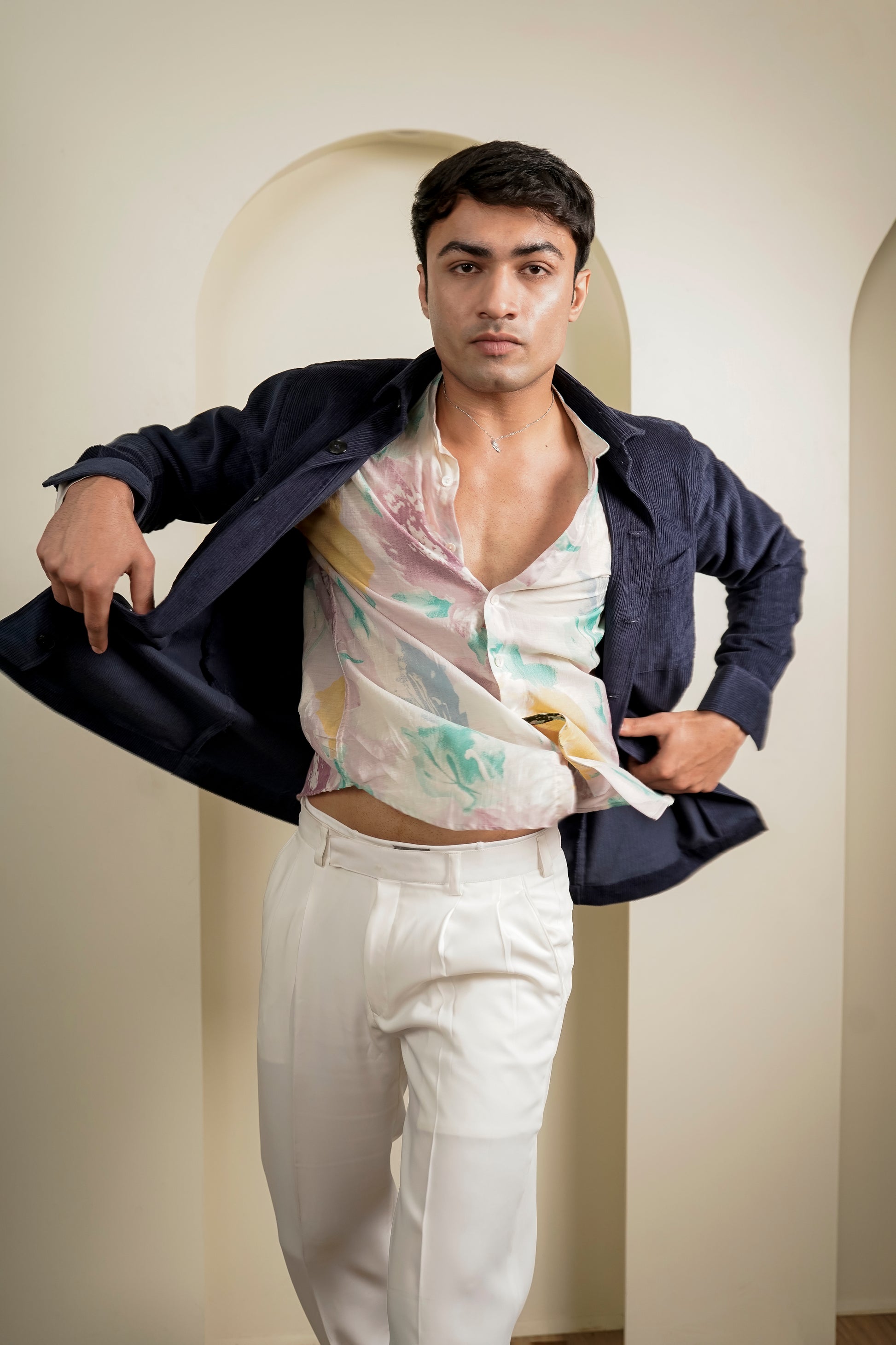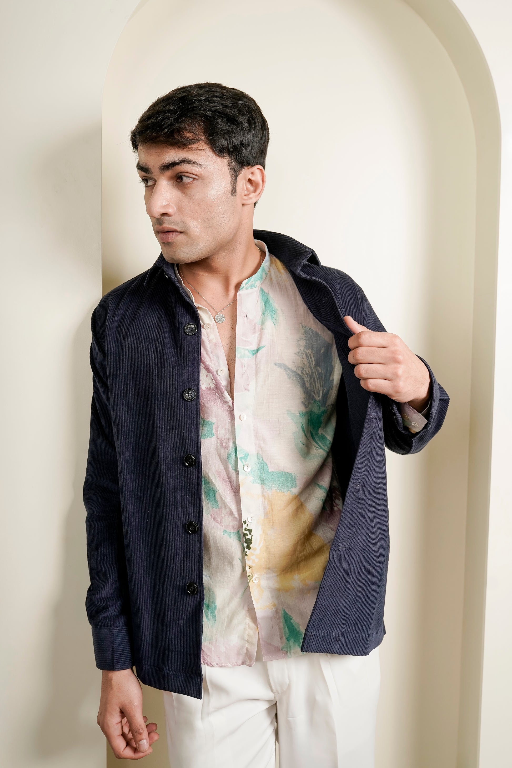 Elevate your wardrobe with this Navy corduroy men's jacket, designed for both style and comfort. Crafted from premium corduroy fabric, it offers a soft texture with a structured feel. Featuring a classic collar, button-down front, and practical pocket, this versatile jacket is perfect for layering across seasons. Its tailored fit and rich texture deliver a timeless, sophisticated look, making it an essential addition to any modern man's collection.